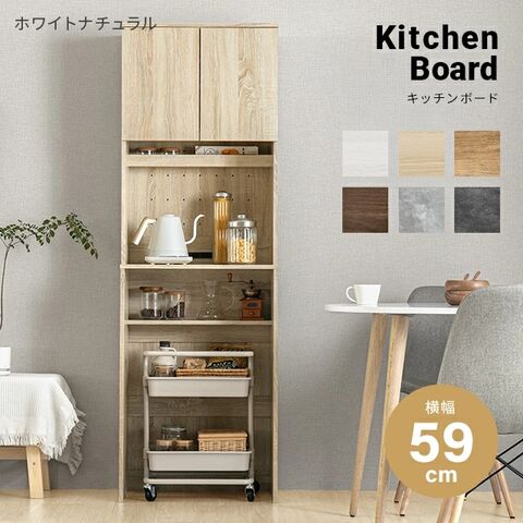 レンジボード 食器棚 キッチンボード 組合せ自由 幅59cm ゴミ箱 上 収納 収納棚 キッチン収納 2口 コンセント レンジ台 カップボード スリム ハイタイプ 木製 キャビネット 扉付き 北欧 チェスト 大容量 収納家具 おしゃれ【ホワイトナチュラル】 小型商品(佐川)