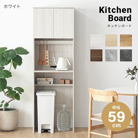 レンジボード 食器棚 キッチンボード 組合せ自由 幅59cm ゴミ箱 上 収納 収納棚 キッチン収納 2口 コンセント レンジ台 カップボード スリム ハイタイプ 木製 キャビネット 扉付き 北欧 チェスト 大容量 収納家具 おしゃれ【ホワイト】 小型商品(佐川)