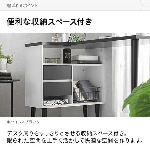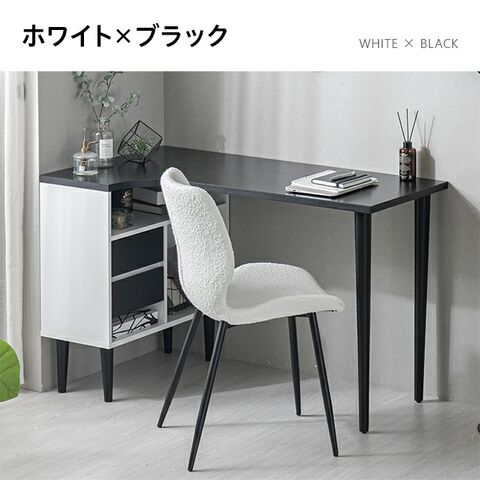 デンマークデザイン デスク パソコンデスク L字 机 おしゃれ 収納 木製 収納 PCデスク 学習机 学習デスク 勉強デスク シンプル ワークデスク 書斎 勉強机 ナチュラル【ミドルサイズ/ホワイト×ブラック】小型商品(佐川)