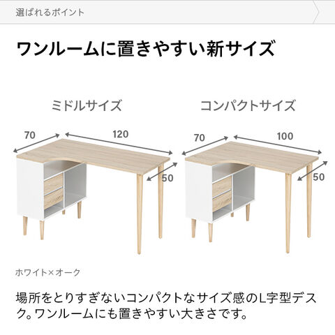 幅120cmのミドルサイズと、ひと回り小さくなった幅100cmのコンパクトの2サイズ展開です。