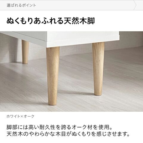 脚部には高い耐久性を誇るオーク材を使用。天然木のやわらかな木目がぬくもりを感じさせます。