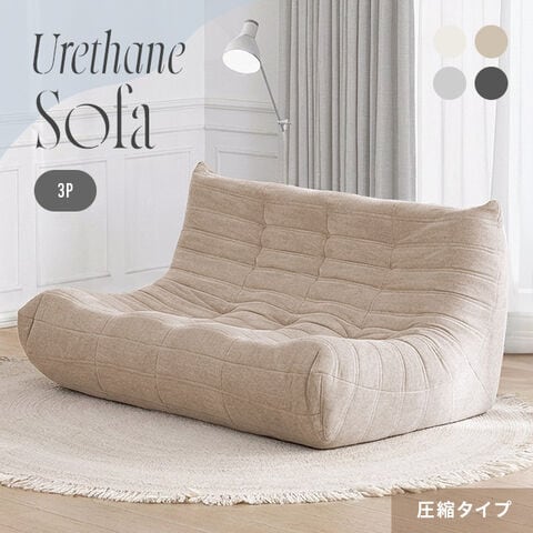 ウレタンソファー 3人掛け ソファ 圧縮 フロアソファー ローソファー ハイバック 3Pソファ クッションソファー コンパクトソファ 圧縮梱包【3人掛け/ベージュ】小型商品(佐川)