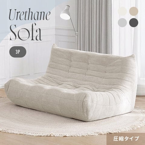 ウレタンソファー 3人掛け ソファ 圧縮 フロアソファー ローソファー ハイバック 3Pソファ クッションソファー コンパクトソファ 圧縮梱包【3人掛け/ホワイト】小型商品(佐川)