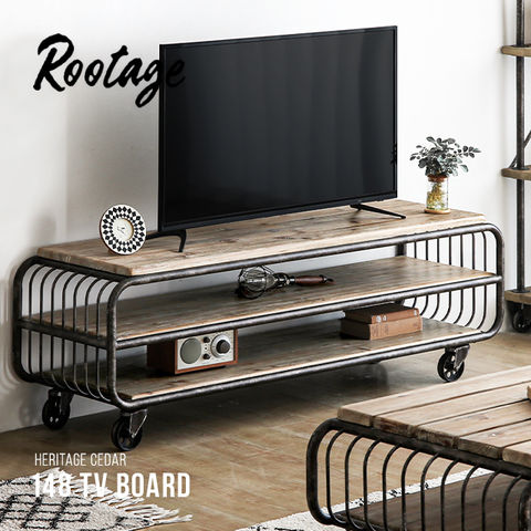 テレビ台 ローボード 完成品 無垢材 天然木 テレビボード 148cm キャスター付き 収納付き TVボード TV台 アイアン 32インチ 32型 40インチ 40型 おしゃれ ヴィンテージ ビンテージ アンティーク Rootage ルーテージ 新生活 【シダー】 大型商品-2