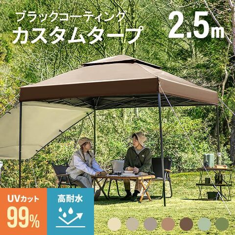 【3ヵ月保証】 テント タープテント 2.5m ワンタッチタープテント 簡単 大型 軽量 日よけ 日除け UVカット 防水 おしゃれ アウトドア ブラックコーティング イベント用 運動会 花見 AND・DECO アンドデコ ソロキャンプ【アースブラウン】 小型商品(佐川)