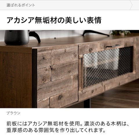 前板にはアカシア無垢材を使用。濃淡のある木柄は、重厚感のある雰囲気を作り出してくれます。