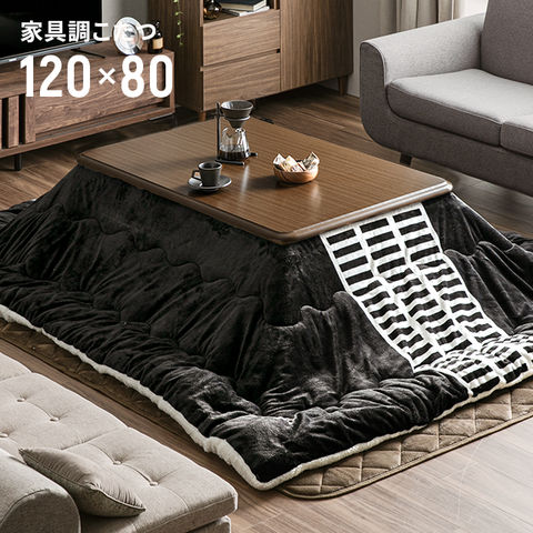 こたつ テーブル おしゃれ 長方形 120×80cm コタツ 炬燵 こたつテーブル こたつ布団 リビングこたつ ダイニングこたつ モダン 北欧 かわいい 天板 uv塗装 ヒーターユニット 継ぎ脚 継脚 継ぎ足し 高さ調節 一人暮らし 【ブラウン/グリッド・ブラック】 中型商品-1