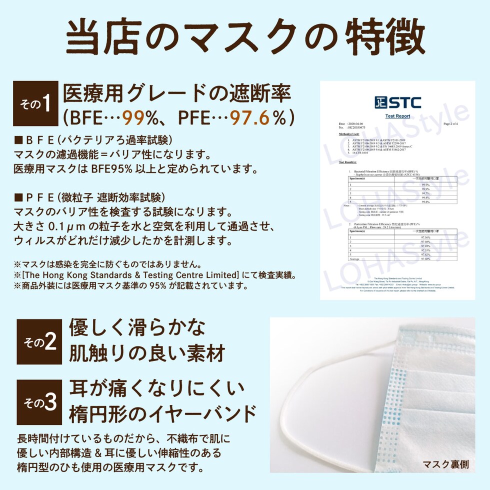 マスク 50枚 医療用 サージカルマスク 不織布 3層 ASTM-F2100 PFE BFE メディカル 青白色 男女兼用 大人 立体 耳が痛くない ウィルス飛沫 花粉 PM2.5 mask