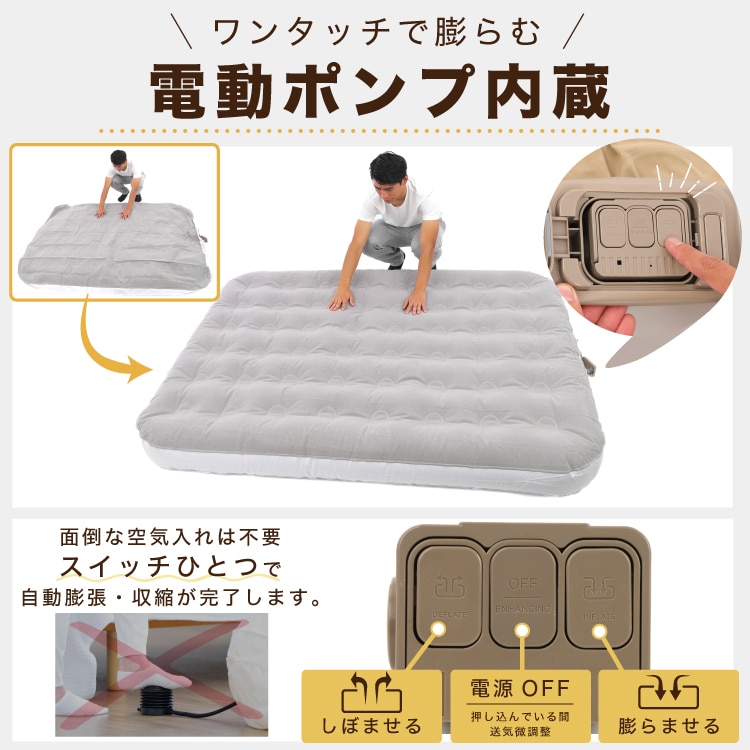 「布団を出すのが大変」「空気入れが面倒」「収納場所がない」――そんなときに役立つのが、この電動ポンプ内蔵エアベッド!