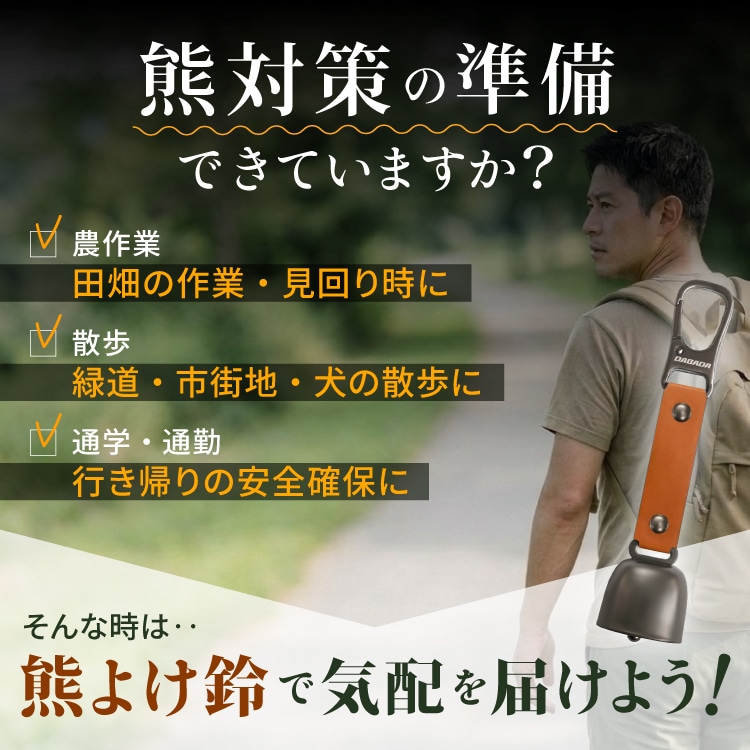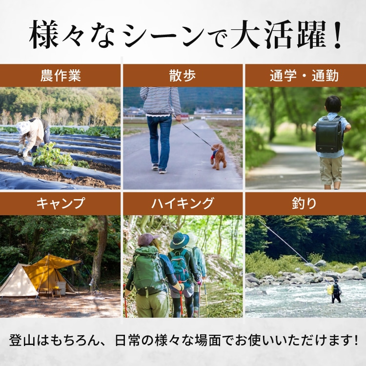 昨今のクマ出没ニュース対策として、本格的な登山やキャンプだけでなく、農作業や夕方の散歩、通学路の安全確保など、日常生活における「安心」のための備えとして最適です。