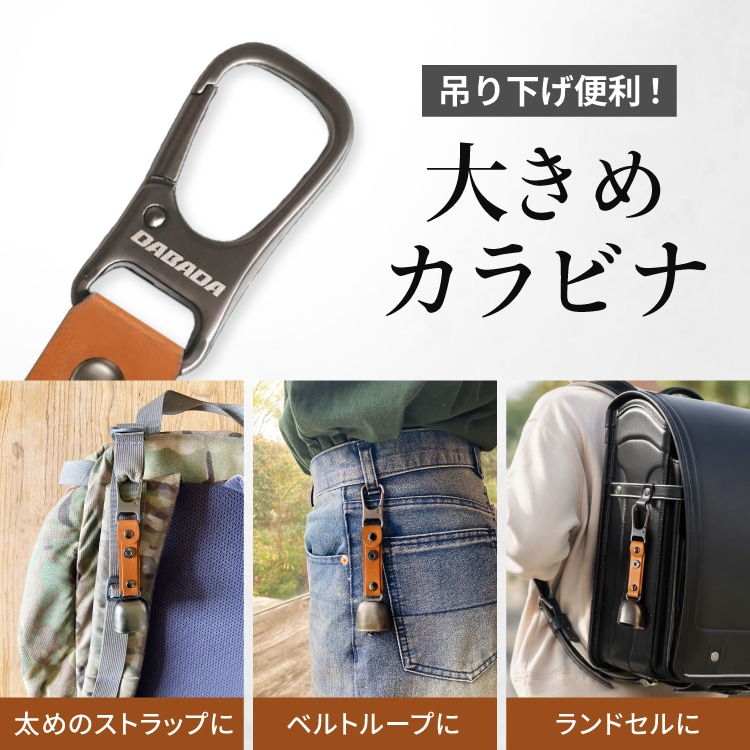 【ワンタッチで使えるカラビナ式】 バックパックのDカンやベルト通しはもちろん、お子様のランドセルや犬の散歩時等、使う場所を選ばず簡単に付け替えが可能です。