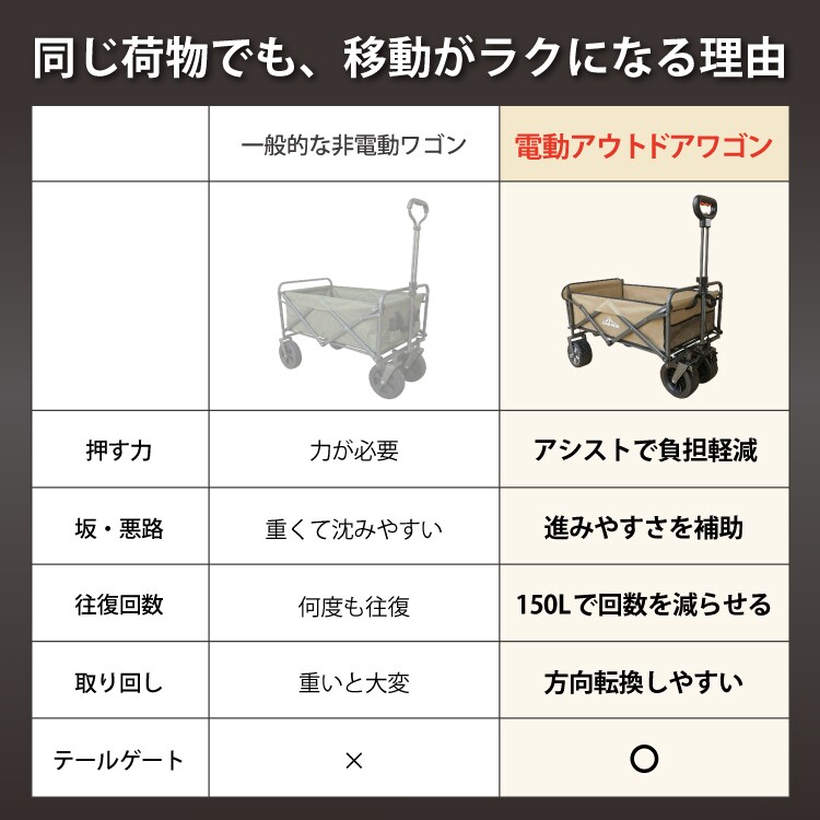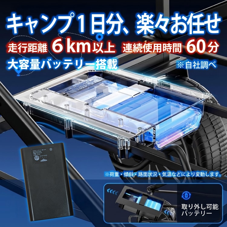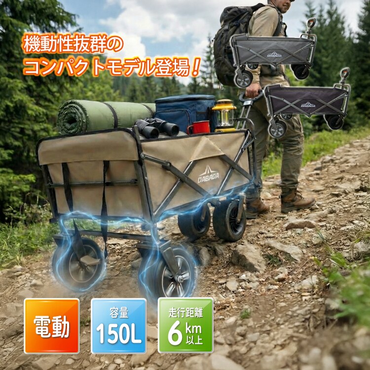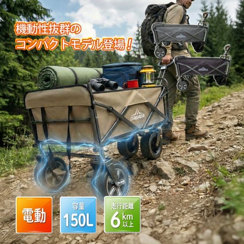 電動 アウトドアワゴン 150L大容量 最大6km以上走行 充電式 キャリーワゴン ストッパー付き 折りたたみ キャンプ BBQ 運動会 荷物運搬