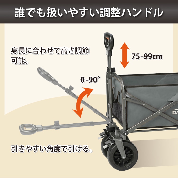 DABADAの電動アウトドアワゴンなら、レバー操作だけでスイスイ前進。