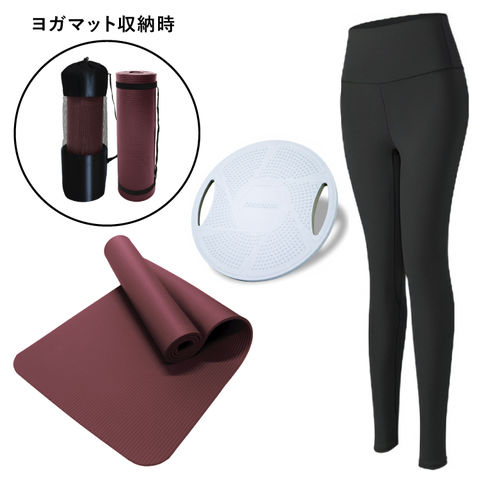 フィットネス3点セットC ヨガウェア バランスボード ヨガマット 10mm ダイエット エクササイズ ヨガ ストレッチ トレーニング 筋トレ バランスディスク ヨガパンツ 体幹 宅トレ