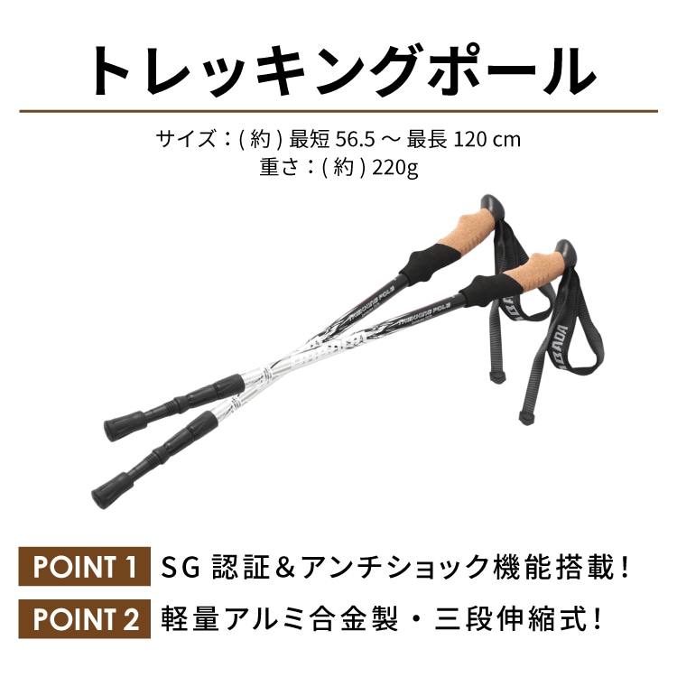 登山セット トレッキングポール 双眼鏡付き 【SGマーク取得】 アルミ製 軽量220g 長さ56.5cm~120cm 2本セット 収納袋付き 伸縮ポール 山登り 杖 登山用品 ギア 登山グッズ ノルディックウォーキングポール ポールウォーキング コンパクト ステッキ ハイキング 伸縮式 散歩