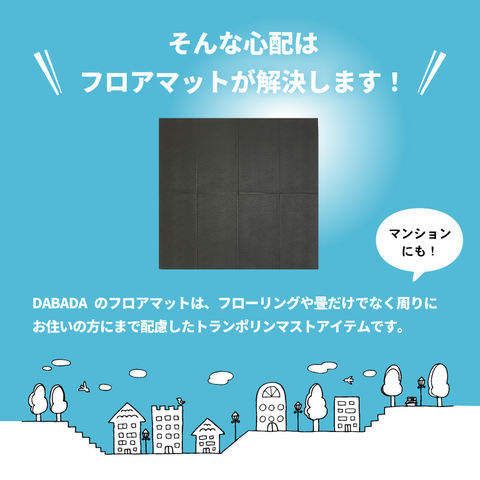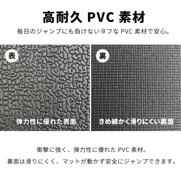 DABADA折りたたみトランポリンに使用するマットはPVC製で、ジャンプ時する際の衝撃によってトランポリンの脚が動きにくくなり位置ずれの防止になり安全性が高まります。