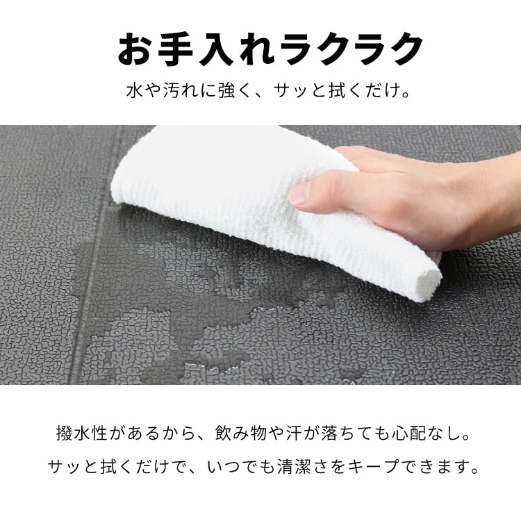 また、運動中の汗や汚れが直接つかず床の汚れ防止にもなります。