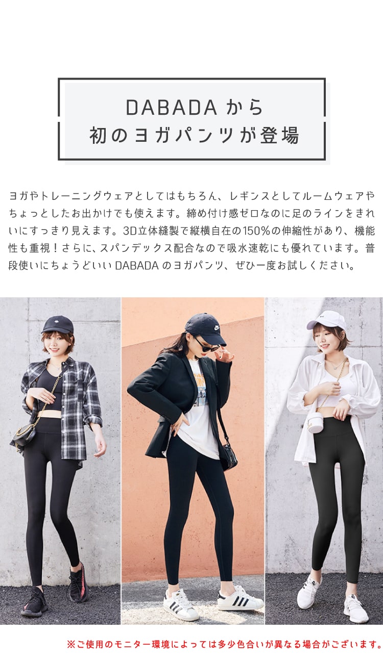 ヨガやトレーニングウェアとしてはもちろん、レギンスとしてルームウェアやちょっとしたお出かけでも使えます。