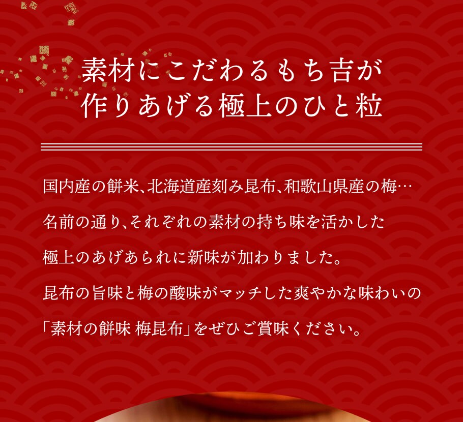【通常便】(※期日指定4月30日までお届け可)もち吉 素材の餅味 梅昆布 袋入り(18g×8袋)【国産米100%】