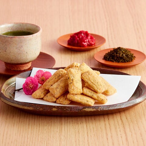 もち米(国内産100%)、植物油脂、梅昆布茶粉末(砂糖、食塩、塩蔵赤しそ粉末、凍結乾燥梅肉、昆布粉末)、刻昆布/調味料(アミノ酸等)、酸味料、香料
