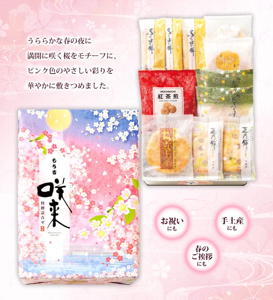 【通常便】(※期日指定4月13日までお届け可)もち吉 特撰詰合せ 咲来【国産米100% 7種38枚】