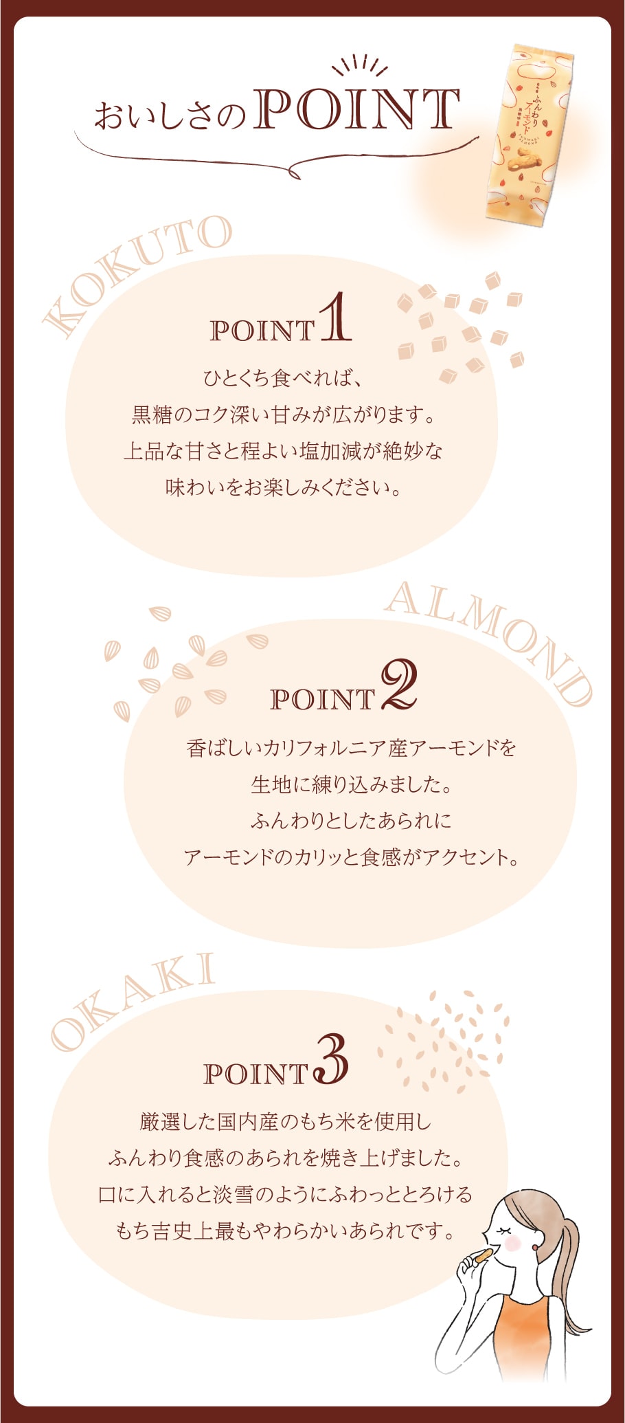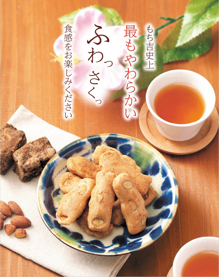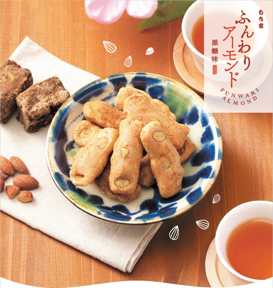 【通常便】もち吉 ふんわりアーモンド 黒糖味(18本)【国産米100%】