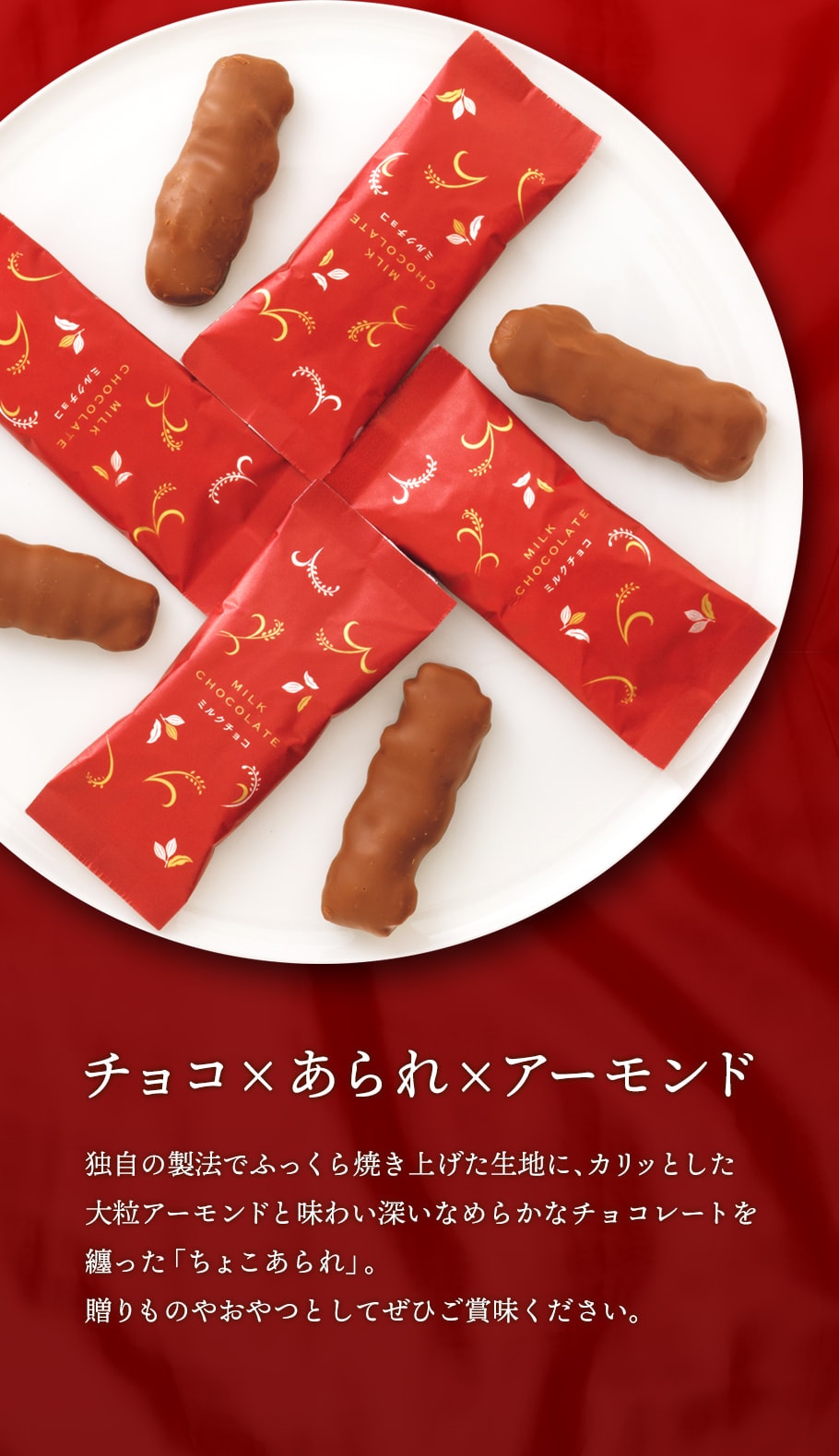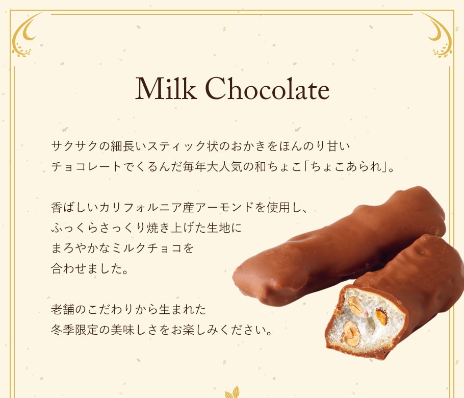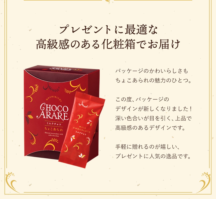 【通常便】もち吉 ちょこあられ 化粧箱 ミルクチョコ【国産米100% 8本】