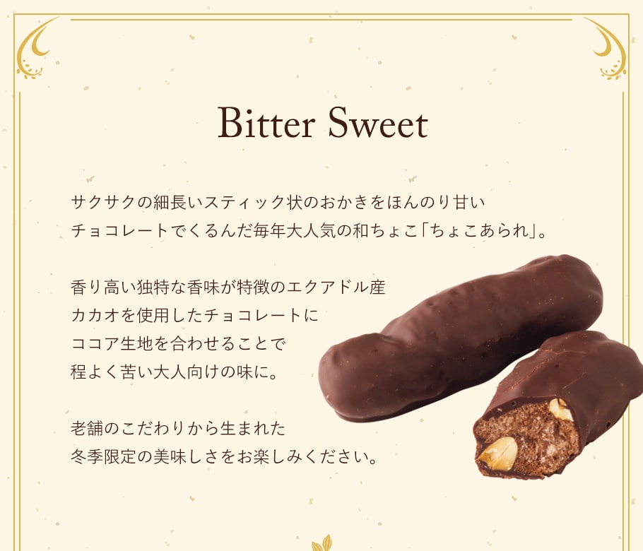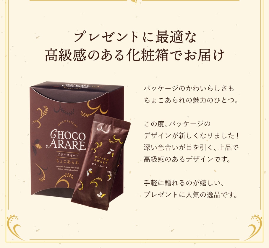 【通常便】もち吉 ちょこあられ 化粧箱 ビタースイート【国産米100% 8本】