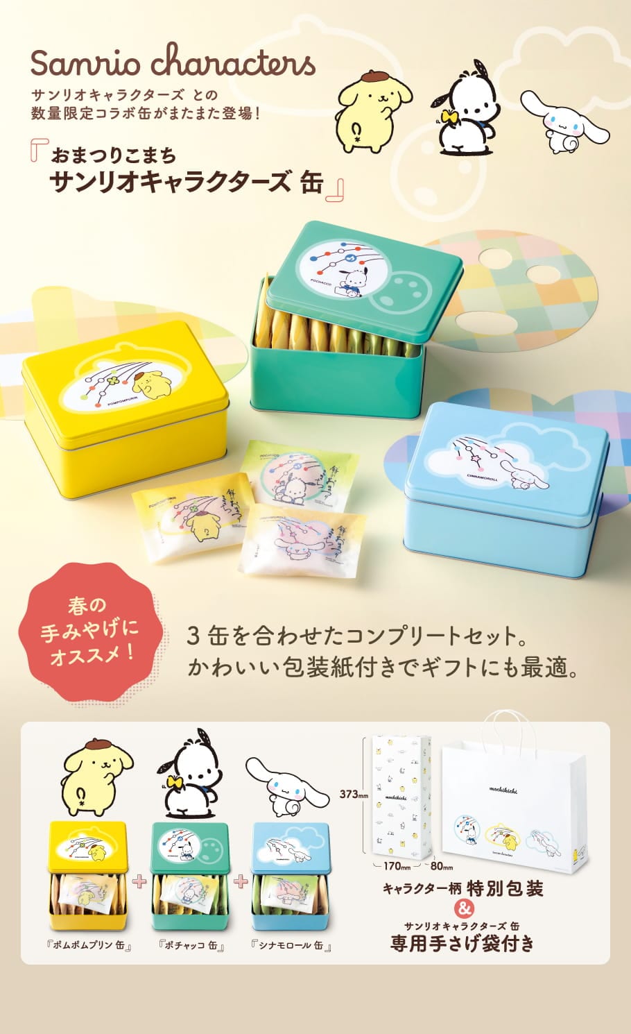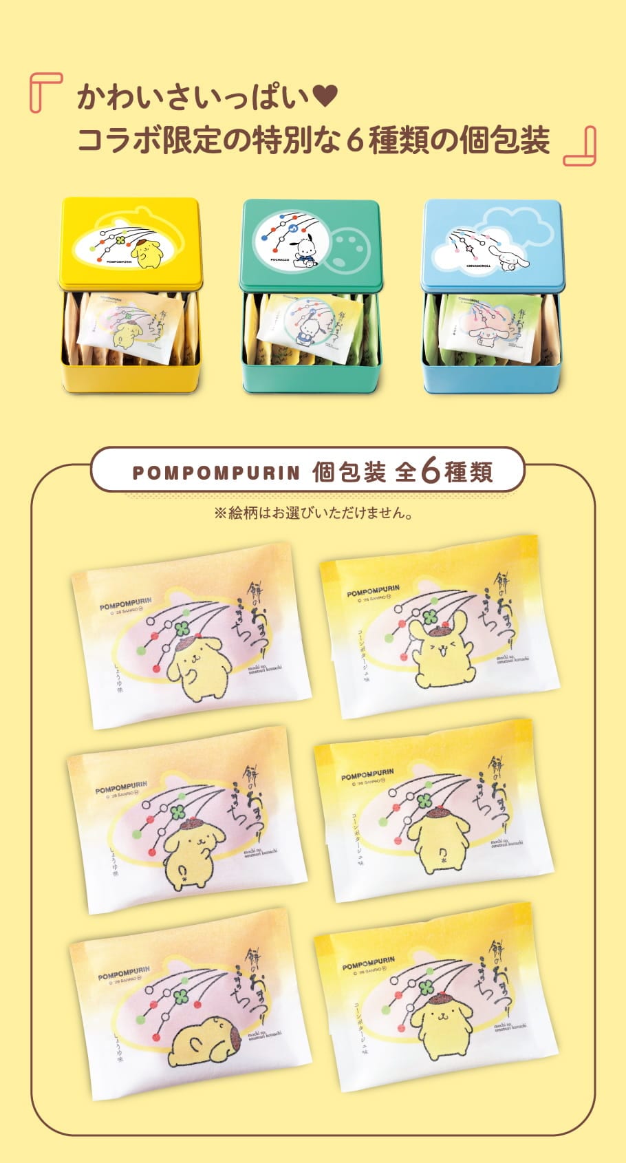 【通常便】(※期日指定4月9日まで)もち吉 おまつりこまち サンリオキャラクターズ 缶【国産米100% サンリオキャラクターズ コラボ】