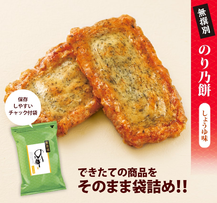 【通常便】もち吉 無撰別 のり乃餅 しょうゆ味(155g)【国産米100%】