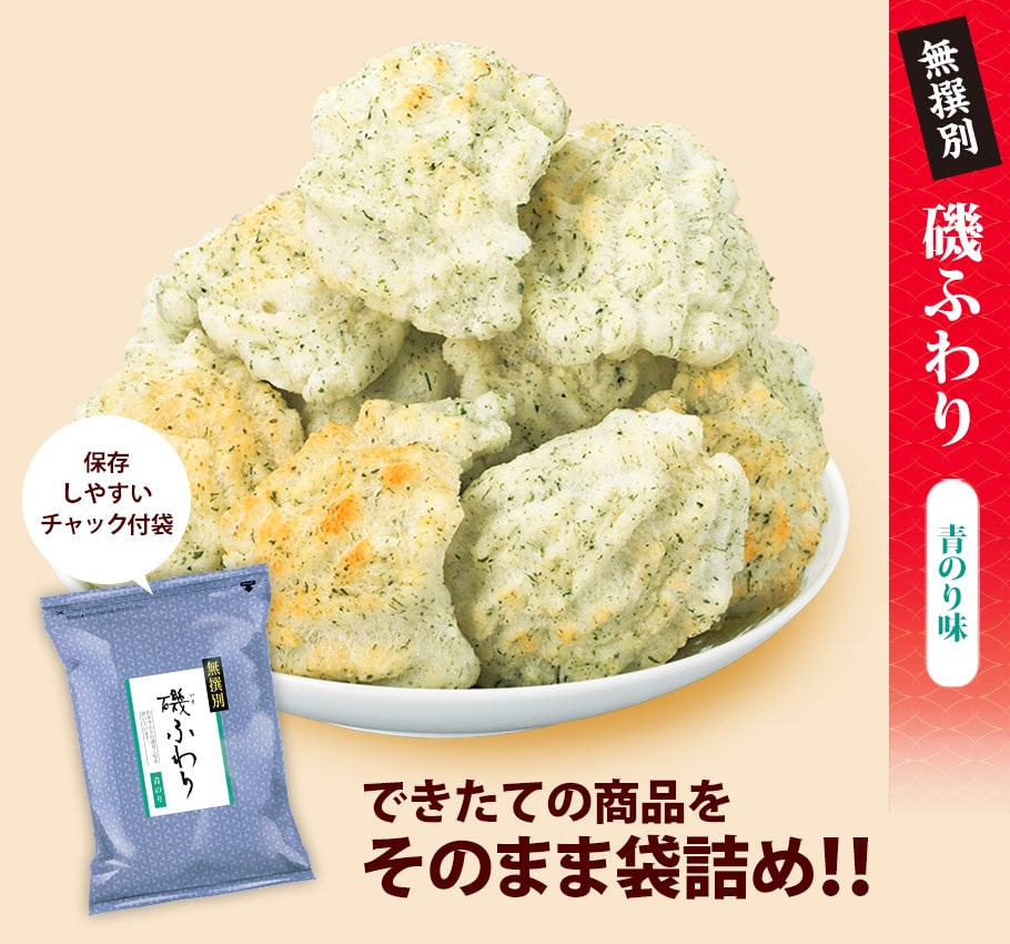 【通常便】(※期日指定5月16日までお届け可)もち吉 無撰別 磯ふわり 青のり味(120g)【国産米100%】【無撰別まつり】