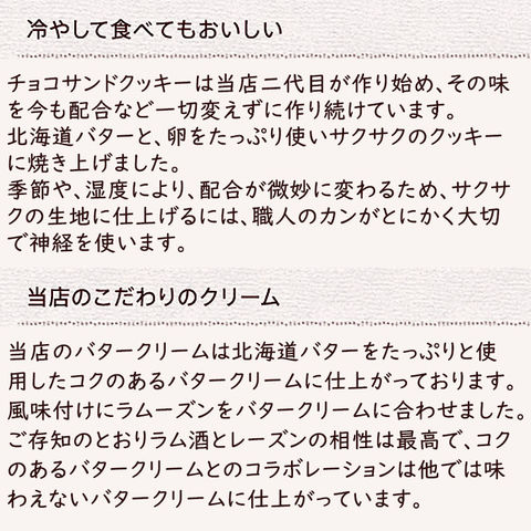 チョコサンドクッキー 各4個 【 合計 8個入 】 ( クッキー 洋菓子 チョコレート レーズン バタークリーム )
