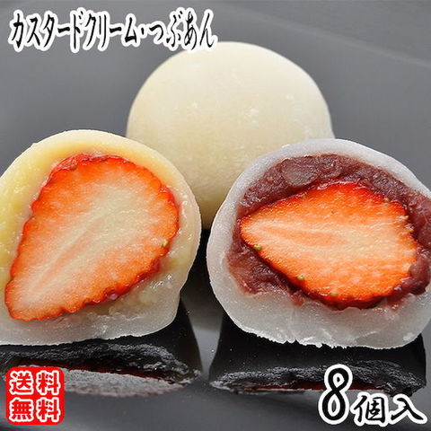 累計100万個以上完売! いちご大福 つぶあん & カスタード 各4個 【 合計 8個入 】 【 送料無料 】 2,600円 ( 粒あん カスタード 苺大福 いちご 苺 大福 和菓子 プレゼント 春 ) ※北海道・沖縄県にお届けの場合、別途送料(500円)を頂きます。