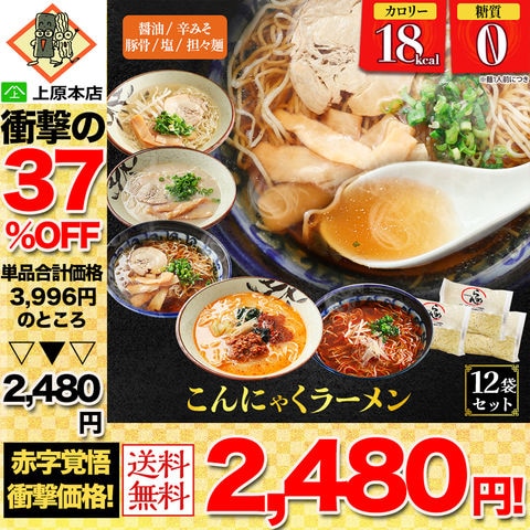【37%OFF!単品合計価格3,996円→2,480円!】 糖質ゼロ 糖質オフ 糖質0 糖質OFF 国産 ダイエット 豆乳こんにゃく麺 こんにゃくラーメン 12パック Aセット ( 醤油×3 辛味噌×3 塩×2 豚骨×2 担々麺×2 ) 送料無料 訳あり わけあり 食品 家庭用