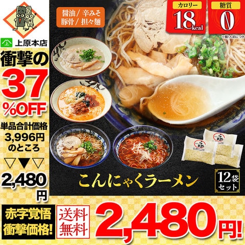 【37%OFF!単品合計価格3,996円→2,480円!】 糖質ゼロ 糖質オフ 糖質0 糖質OFF 国産 ダイエット 豆乳こんにゃく麺 こんにゃくラーメン 12パック Dセット ( 醤油×3 辛味噌×3 豚骨×3 担々麺×3 ) 送料無料 訳あり わけあり 食品 家庭用