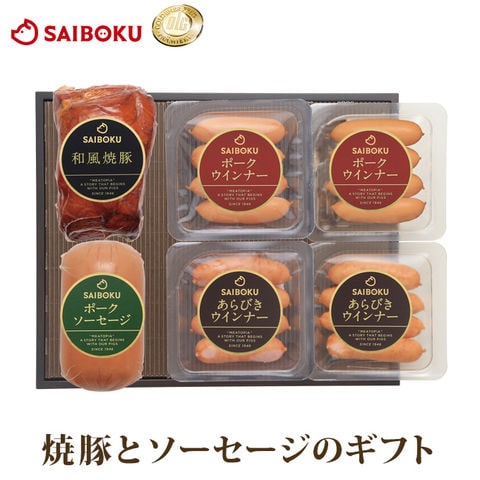 | セット内容 | 1.和風焼豚 250g 2.ポークソーセージ 230g 3.ポークウインナー 56g×2 4.あらびきウインナー 56g×2 |