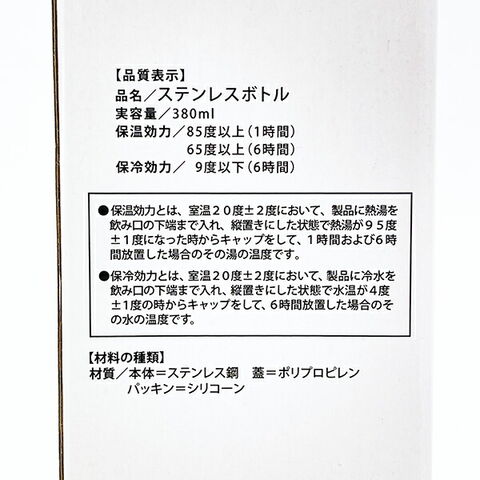 ほわころくらぶの可愛いデザインがプリントされた、使い勝手の良い380mlの飲み切りサイズのステンレスボトル。持ち運びに便利です。※保温効果/85度以上(1時間)、70度以上(6時間)※保冷効果/8度以下