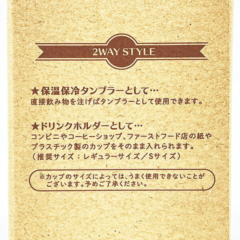 Mサイズコンビニコーヒーがすっぽり入ってとっても便利なタンブラー。真空二重構造のステンレス製なので保温も保冷もOK!もちろん直接飲み物を注いでもお使いいただけます。※保温効力/41℃以上(1時間) ※保冷効力/8℃以下(1時間)