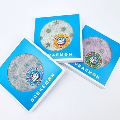 ドラえもんのタオルハンカチです♪ドット柄の中に星柄が入ったシンプルながらも遊び心あるデザイン。コンパクトなパッケージ入りなのでプチギフトなどにもおすすめです☆
