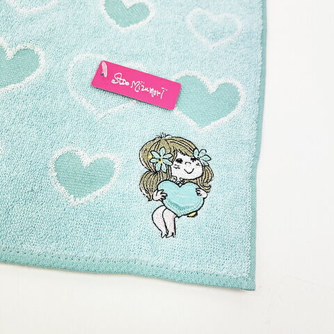 水森亜土のハート×女の子デザインが可愛いハンドタオルです。ふわふわで使いやすくプレゼントにもおすすめ☆亜土ちゃんらしい可愛いデザインなので持ち歩くだけで気分も上がりそうです♪