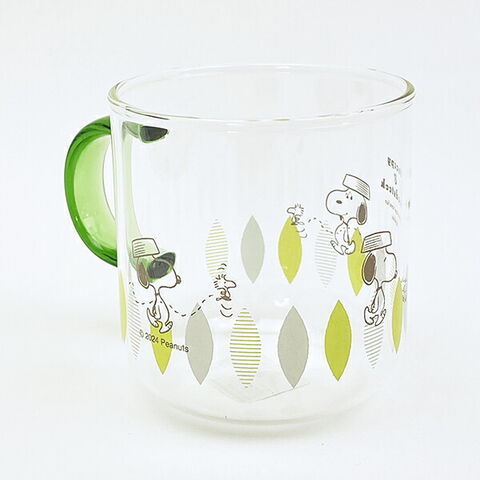 スヌーピー グリーン・リーフ カラーハンドル耐熱ガラスマグカップ コップ 日本製 SNOOPY