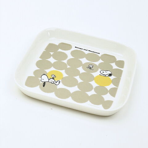 おしゃれなデザインのスヌーピーのお皿です♪親しい人達を招いてコーヒーやお茶の時間を楽しむのに、調度良いアイテムです◎日常の喧騒から離れて心地よいひとときを過ごすことができますよ♪ケーキを乗せたり、お菓子を乗せてもGood!小物入れやコスメ置きのトレーとしてもお使いいただけます♪
