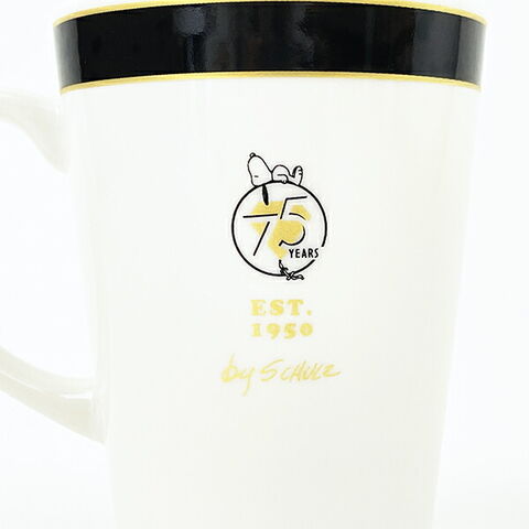 スヌーピーの記念マグカップです。PEANUTS75周年を記念したデザインで特別なアイテムです♪シンプルながらもオシャレなデザインなのでどんな食卓でも合わせやすい◎箔押しロゴ入りの箱入りになりますので、プレゼントにもおすすめ☆とってもオシャレなデザインなので、ぜひ周年のお祝いにいかがですか?食洗機・電子レンジ使用可◎