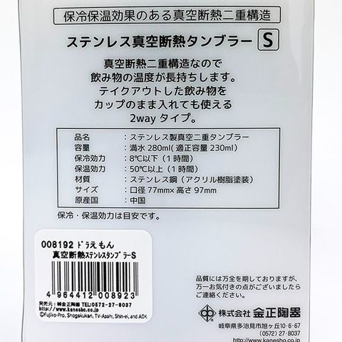 保冷保温効果のある真空断熱二重構造のタンブラーです。真空断熱二重構造なので飲み物の温度が長持ちします◎テイクアウトした飲み物をカップのまま入れても使える 2wayタイプ♪ドラえもんがどこでもドアから現れそうな楽しいタンブラーです♪