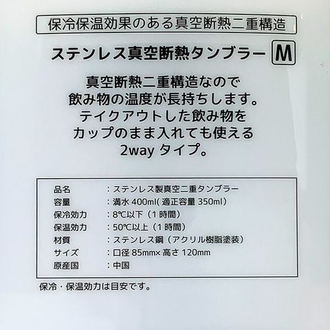 保冷保温効果のある真空断熱二重構造のタンブラーです。真空断熱二重構造なので飲み物の温度が長持ちします◎テイクアウトした飲み物をカップのまま入れても使える 2wayタイプ♪ドラえもんがどこでもドアから現れそうな楽しいタンブラーです♪