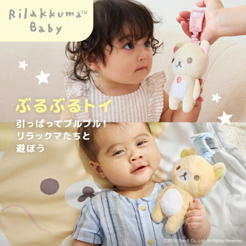 コリラックマのぶるぶるトイです。引っぱってブルブル!リラックマと遊ぼう♪着脱式テープのストラップ仕様で、ベビーカーやバックに取り付け可能! 優しい手ざわりがうれしいポイント♪かわいいコリラックマといつでも一緒に居れちゃいます☆【お手入れ方法】乾いた布や水で濡らし固く絞った布で拭き、完全に乾燥させてください。アルコール成分を含む除菌シート等で製品を拭かないでください。変色、変形するなど製品が劣化する可能性があります。