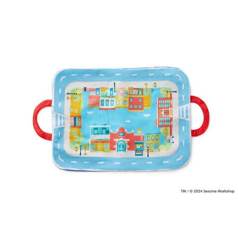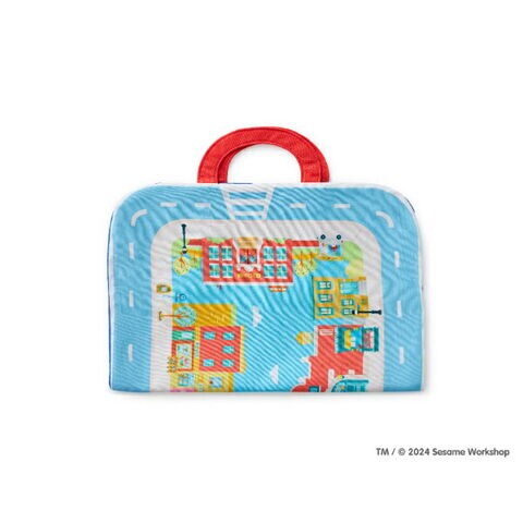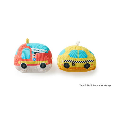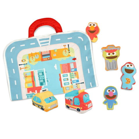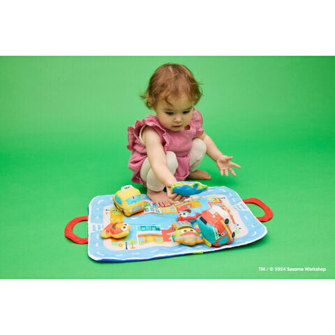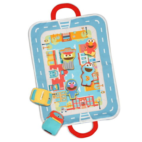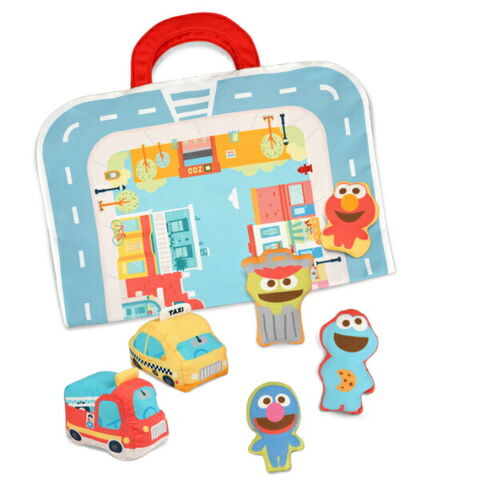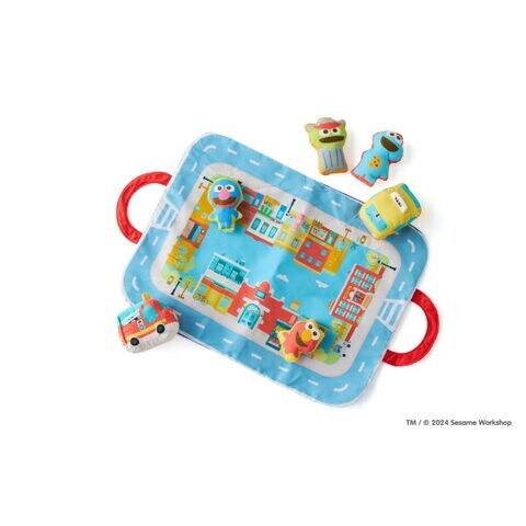 セサミストリートのタウンマットを広げて乗り物やお人形でごっこ遊びが楽しめるプレイセットです。ごっこ遊びが難しい月齢でも、音の鳴るしかけがあるお人形をニギニギフリフリすることで楽しめます♪遊び終わったらタウンマットを折り畳んでバッグ型にすることができるので、中に乗り物やお人形を入れてお片付けの練習ができちゃいます☆とても軽いので、お子さま自身で持ち運ぶことも◎ファーストトイにぴったりなセットです。洗濯機で洗えます。製品の洗濯表示に従ってお手入れしてください。アルコール成分を含む除菌シート等で製品を拭かないでください。変色、変形するなど製品が劣化する可能性があります。【対象年齢:9カ月から】【サイズ】マップ サイズ (持ち手含む):73cm×35cm※持ち手片方6.5cm、消防車:9cm×6.5cm×W6.5cm 、タクシー:9cm×6.5cm×7cm 、クッキーモンスター:6cm×3cm×10.5cm、エルモ:6cm×2.5cm×7.5cm、オスカー:7.5cm×3cm×10cm、グローバー:6cm×2.5cm×9cm