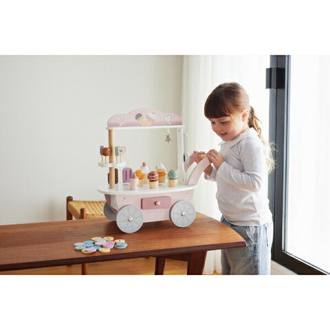 キュートなアイスがいっぱい!たのしいお店屋さんごっこができるアイスワゴンです。アイスクリーム、ソフトクリーム、アイスキャンディー、キャンディー、ソースボトル、スクープ、コインがついたアイスワゴン♪アイスクリームとコーンは自由に組み合わせられるので、遊びの幅が広がります!カートの後ろには引き出し付きで、コインを使って楽しいお店屋さんごっこができちゃいます☆付属のコインで楽しく数字にふれられるのもgood♪カラフルな色味とかわいいデザインなのでギフトにもぴったりなアイテムです☆彡【セット内容】アイスワゴン本体:1台、アイスクリーム:3個、ソフトクリーム:2個、アイスクリームコーン:3個、ソフトクリームコーン:2個、アイスキャンディ:4本、キャンディ:5個、スクープ:1個、ソースボトル:1本、コイン:20枚※この商品は組み立てが必要です。組立ての際はお子さまが近くにいない事を確認し、必ず保護者の方が行ってください。