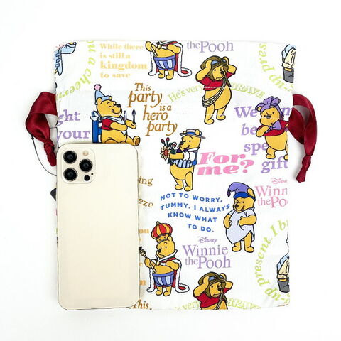 くまのプーさんのデザイン、リボンと巾着の色合いが可愛い巾着です♪