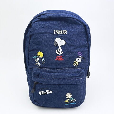 スヌーピーのリュックです♪スヌーピー達の可愛い刺しゅうと、デニム素材がとってもキュート♪マチが広く、ポケット付きで機能性も◎背面には、クッションが付いているので背負い心地も◎しっかりとした素材なので、デイリー使いにピッタリでお子さんと兼用もできますよ☆彡